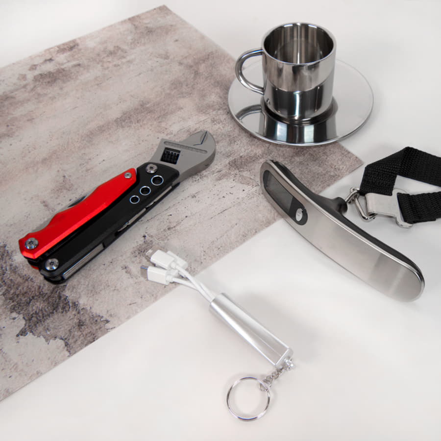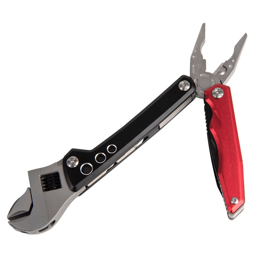8 наиболее часто используемых инструментов в одном: 1. Пассатижи 2. Кусачки 3. Открывашка для бутылок 4. Открывашка для консервных банок 5. Разводной ключ 6. Шлицевая отвертка 7. Крестовая отвертка (2 насадки) 8. Нож Полноразмерный мультиинструмент поможет с решением любой бытовой проблемы.