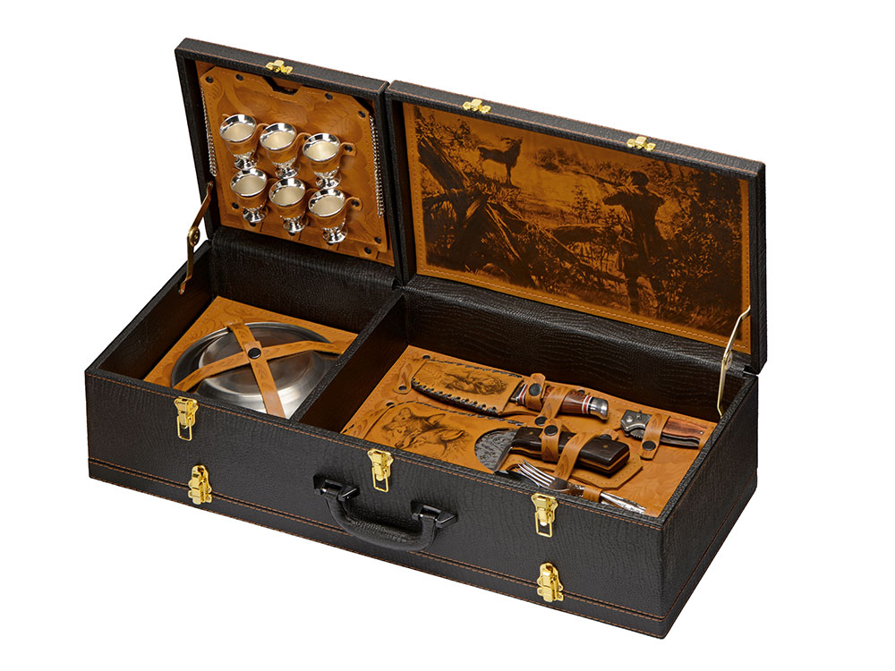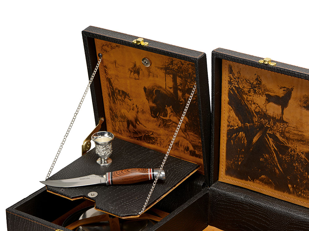 Кейс из сплит-кожи, с повышенной износостойкостью, с картиной, внутренняя отделка натуральная кожа с художественным выжиганием.