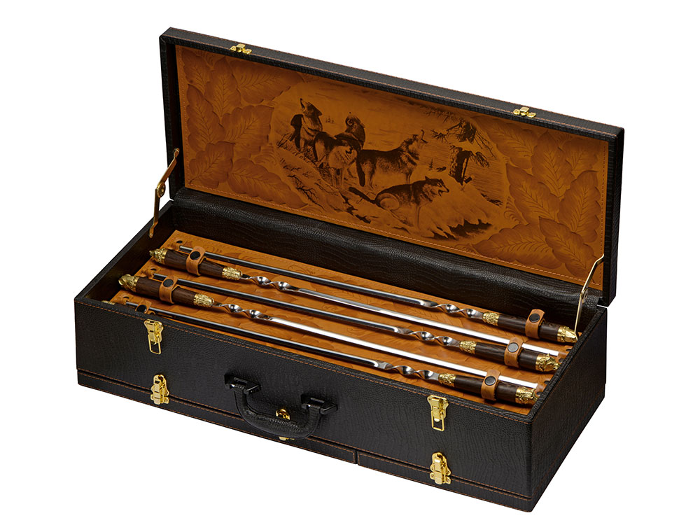 Шампура 630 мм (нерж. сталь), ручка орех, бронзовое литье– 6 шт.