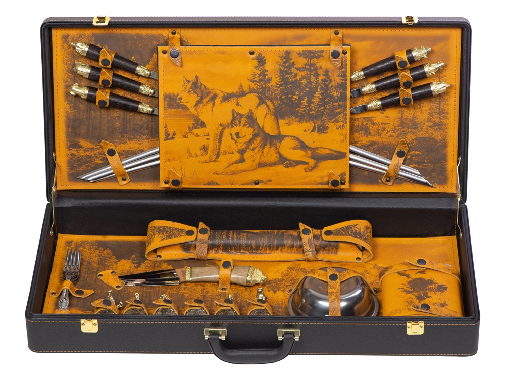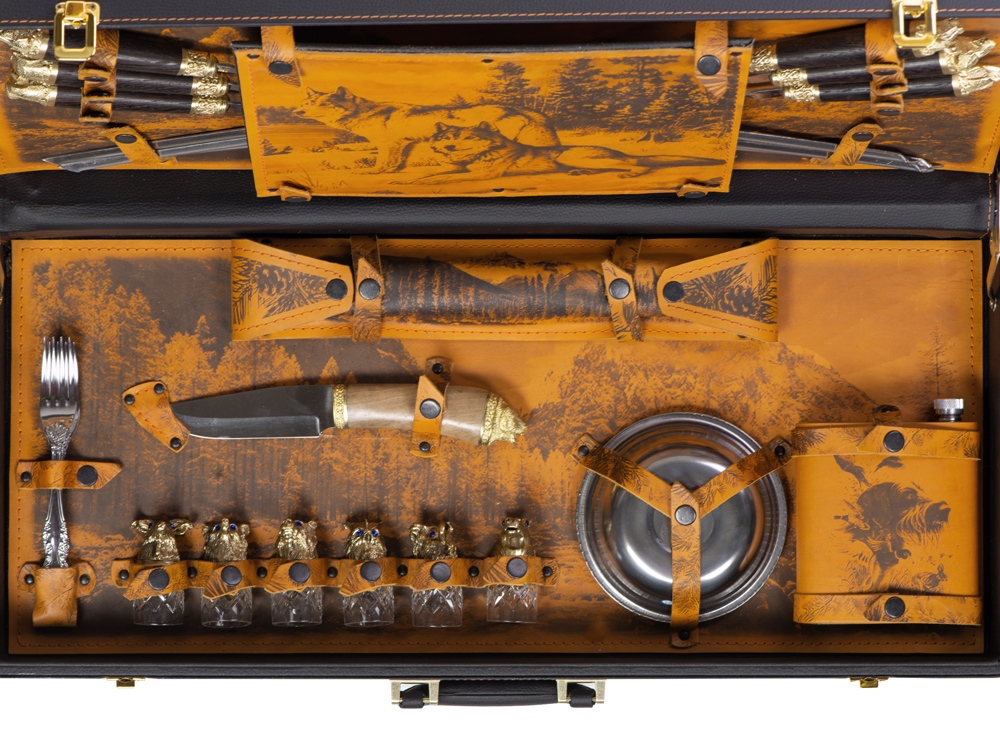Кейс из сплит-кожи, с повышенной износостойкостью, внутренняя отделка натуральная кожа с художественным выжиганием.