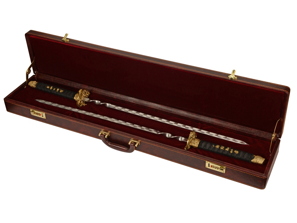 Кейс из сплит-кожи, с повышенной износостойкостью. Набор состоит из двух шампуров. Шампур- 90 см, рабочая поверхность- 51 см.