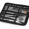 Практичный и функциональный набор для любителей барбекю и шашлыков на природе. В компактной упаковке богатое содержимое: щипцы, лопатка, вилка, кисточка, шампура, шпажки для шашлыка. Прекрасное дополнение ко всем праздникам и посиделкам на природе.