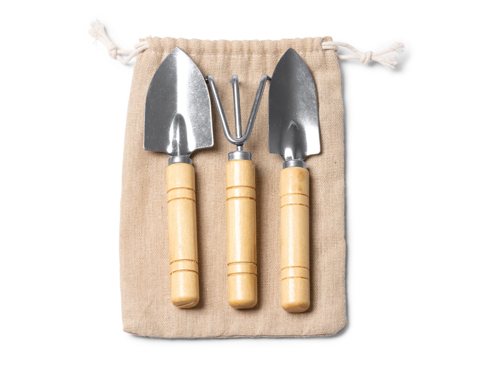 Садовый набор из 3 аксессуаров из нержавеющей стали и бамбуковая ручка. Включает большую и малую лопатки и грабли. В комплект входит хлопковый чехол. Презентация в дизайнерской эко-коробке.