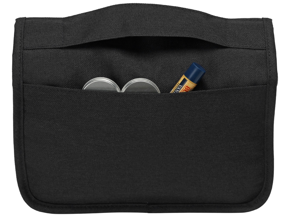 Несессер Planar оснащен металлическим крючком для подвешивания, который в сложенном виде убирается внутрь и не будет вам мешать. Для переноски несессер имеет ручку снаружи, а еще вы найдете плоский вместительный карман на его задней стороне. Клапан несессера закрывается на липучки и имеет три кармана — большой на молнии из прозрачного материала, который легко моется, даже в случае, если флакон изнутри разгерметизировался, и два из сетки, куда можно положить необходимые мелочи и которые удобнее использовать в висящем виде.