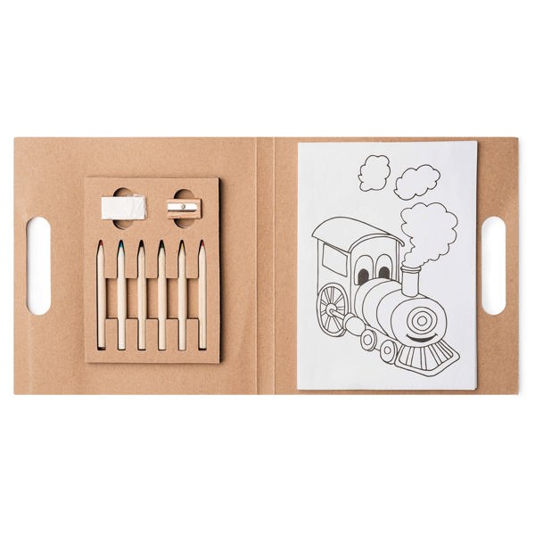 Набор из 6 деревянных карандашей в блокноте из переработанного картона, в комплекте с точилкой, ластиком и разукрашкой.