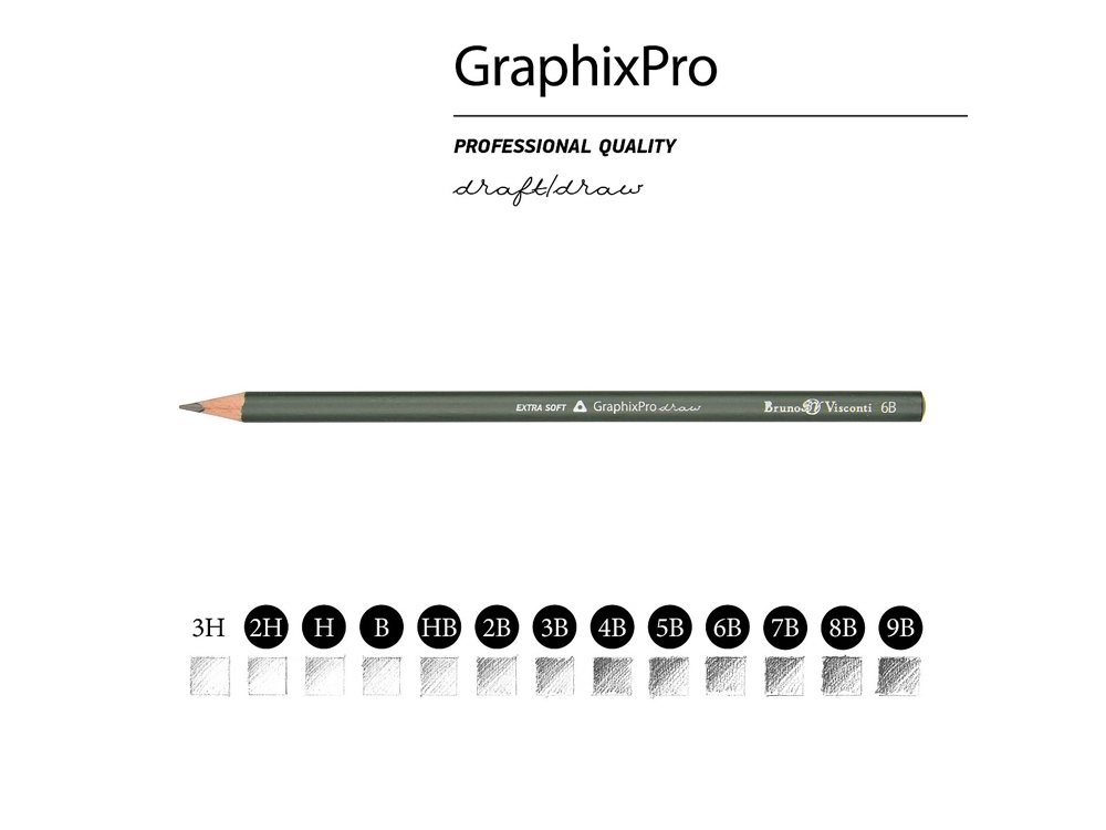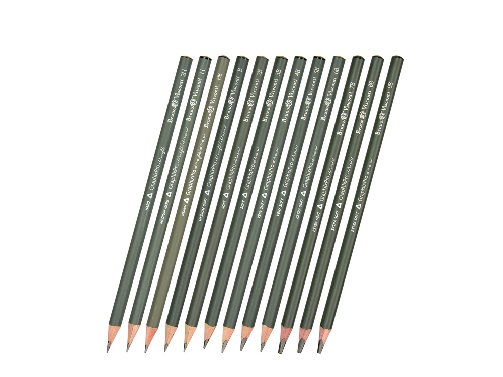 Двенадцать чернографитных карандаша Sketch&Art от BrunoVisconti — универсальный набор карандашей различной степени твердости (2H-9B) для выполнения различных графических работ.