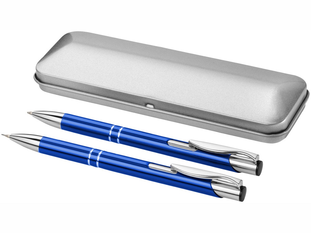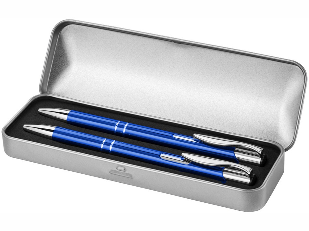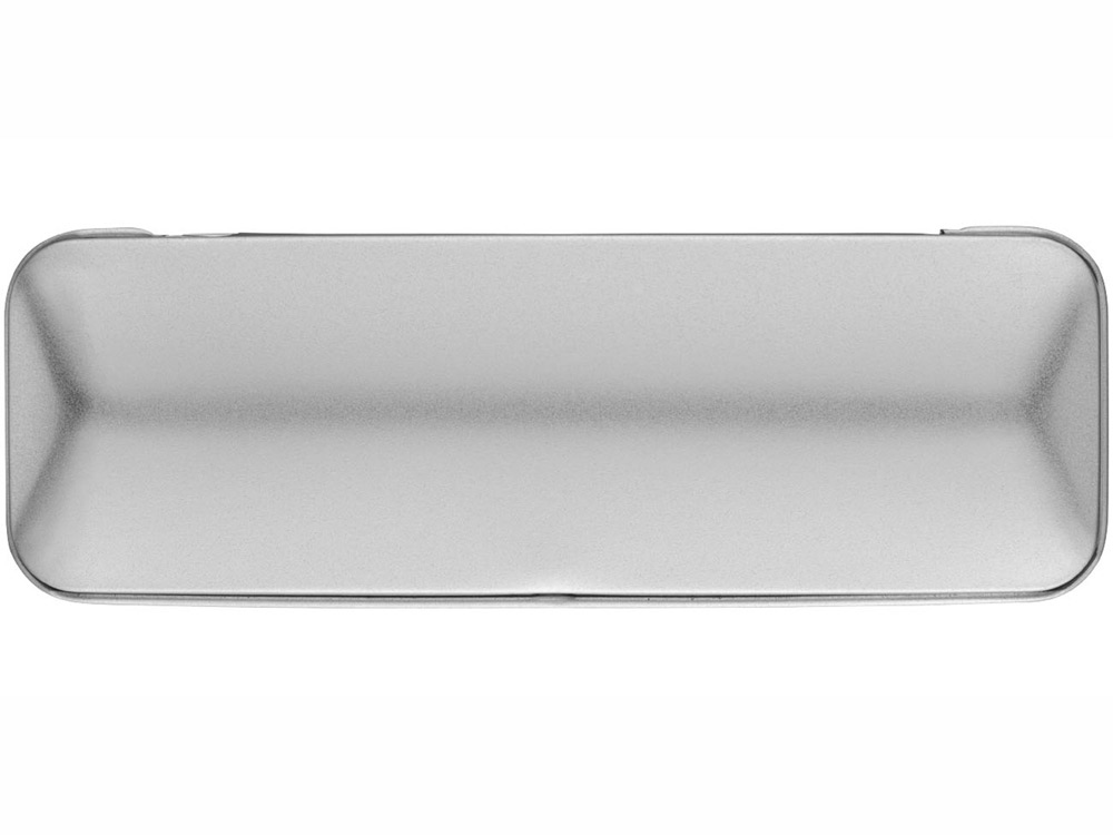 Шариковая ручка и механический карандаш в жестяном футляре с подкладкой из ЭВА.