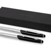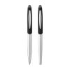 Набор состоит из 2-х ручек со стилусами: шариковой и роллера. Изящная шариковая ручка-стилус и ручка-роллер с матовой верхней частью и блестящей хромированной нижней частью и соответствующими хромированными вставками. Набор ручек Roma будет отличным деловым подарком к любому празднику.