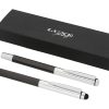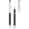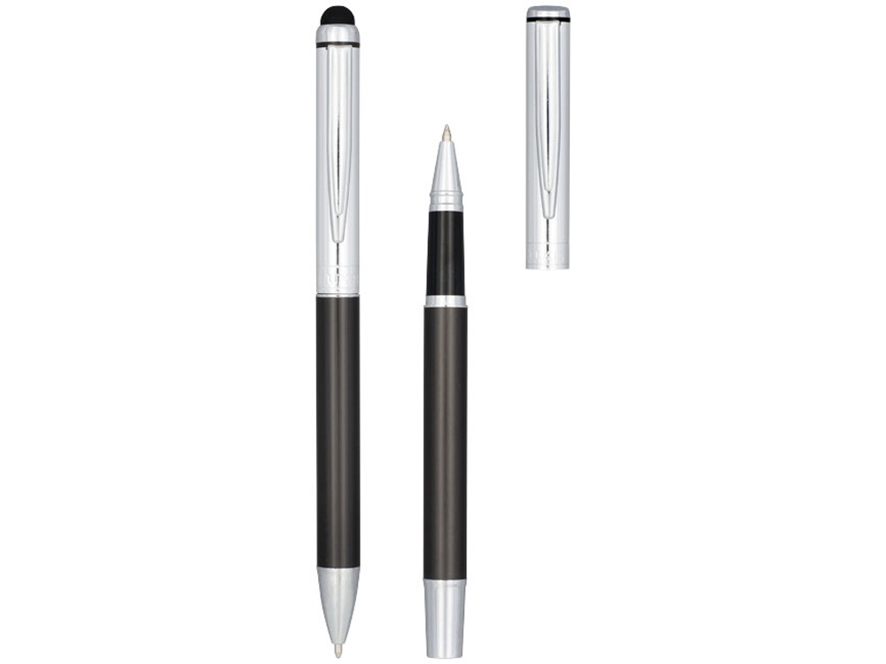 Набор с шариковой ручкой и ручкой-стилусом. Эксклюзивный набор ручек, включающий шариковую ручку-стилус и ручку-роллер. Обе ручки предлагаются с графитовой нижней частью корпуса и полированной хромированной верхней частью. В набор входят запасные чернила и стилус с прорезиненным наконечником для работы с планшетами и смартфонами. Предлагается в подарочной коробке LUXE (17 x 5,5 x 3 см). Металл.