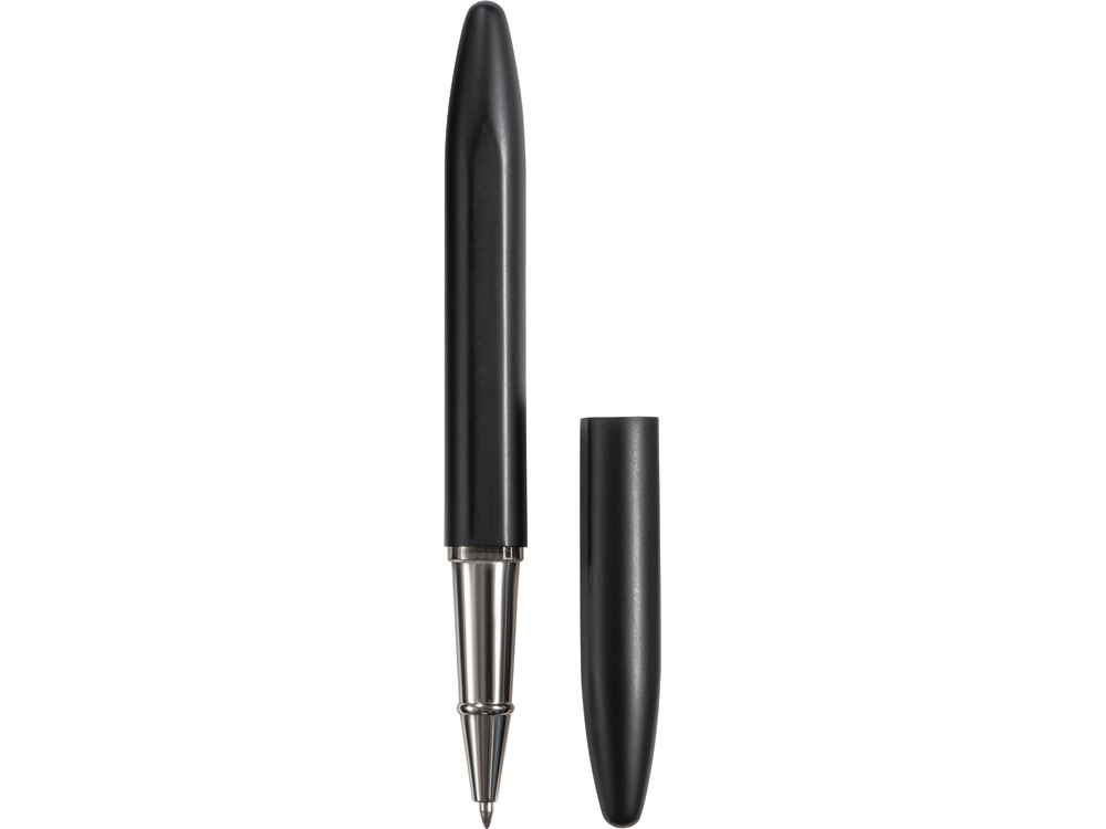 Ручка-роллер Bullet от Lettertone в черном матовом цвете премиального класса. При нанесении методом гравировки на ее корпусе вскрывается серебристый зеркальный слой, эффектно выглядящий на матовом фоне. Стержень заправлен чернилами Dokumental синего цвета. Ручка прекрасно ложится в руку, приятна на ощупь.