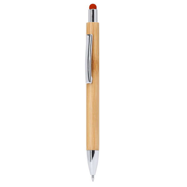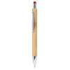 Шариковая ручка Eco line с бамбуковым корпусом, цветным указателем и металлическим клипсом. Серебристая кнопка, клип и наконечник. Прозрачная заправка jumbo диаметром 1,0 мм с синими чернилами.