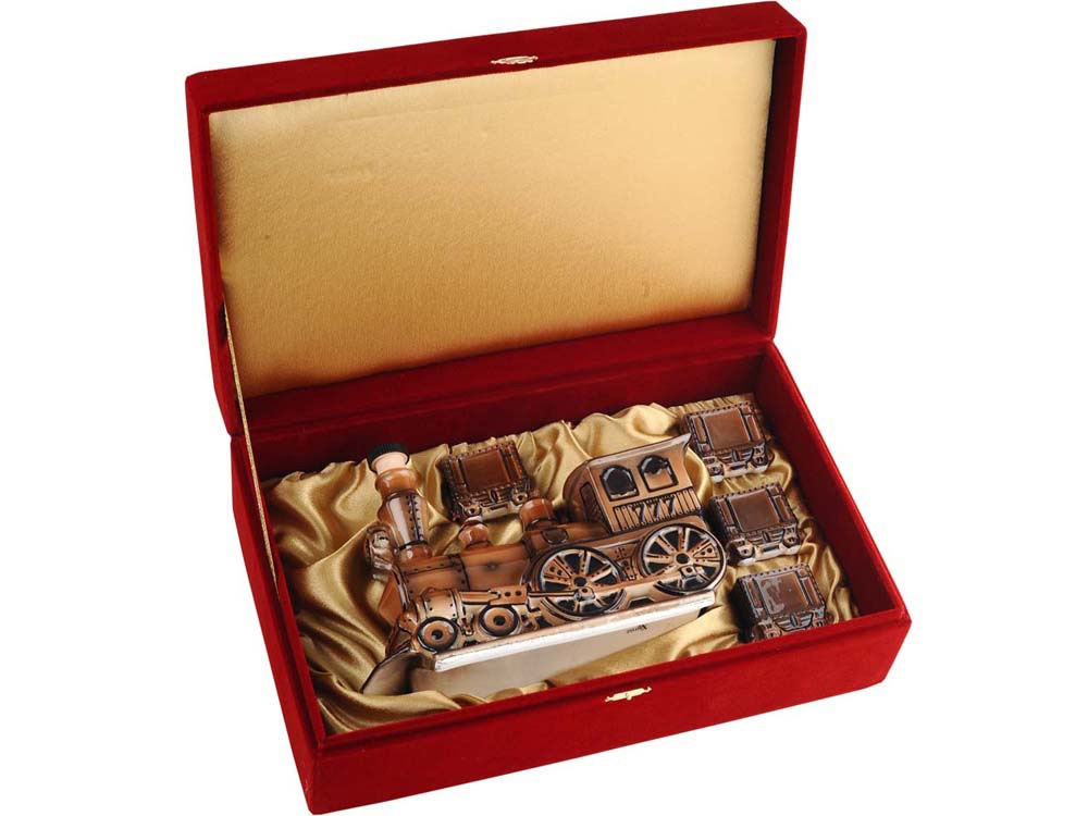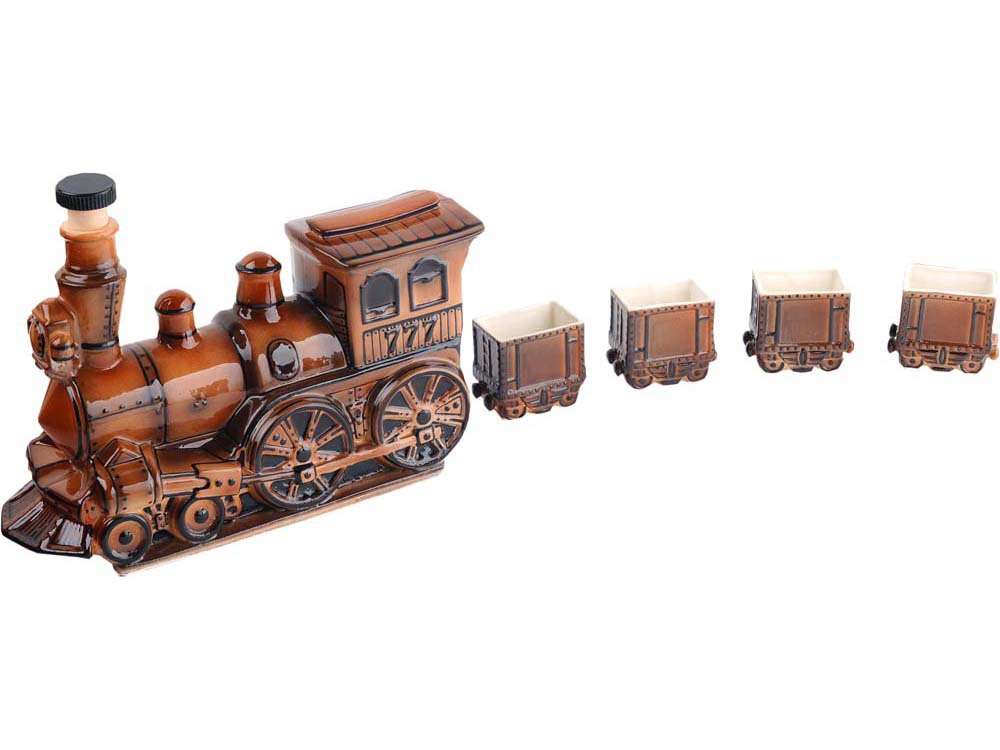 Если Ваша деятельность связана с железной дорогой, Вам будет особенно приятно видеть на своем праздничном столе набор для водки в виде паровоза и вагончиков. Паровоз выступает в роли штофа, а вагончики — в роли стопок. Причем это не массовое производство, а авторская работа.