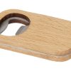 Открывалка для бутылок из нержавеющей стали с деревянной поверхностью. Дерево, нержавеющая сталь.
