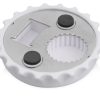 Открывалка в форме крышки – креативное и удобное приспособление. Вы никогда не потеряете ее, ведь открывалка легко крепится на холодильник двумя магнитами.