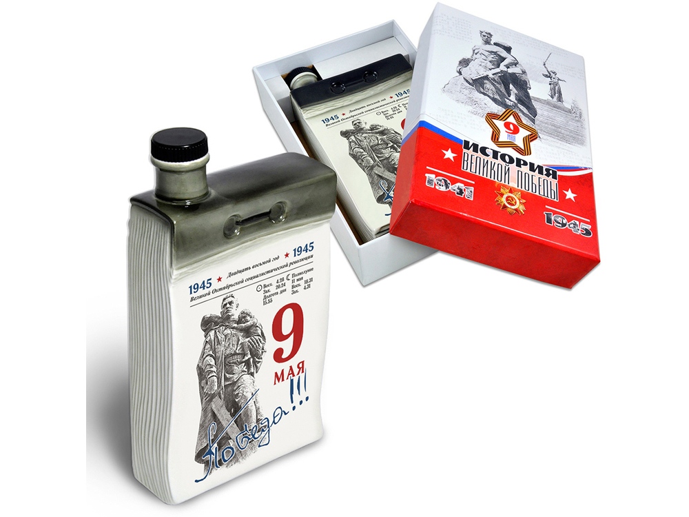 День Победы — один из самых важных и памятных государственных праздников в нашей стране. В этот знаковый для России день принято дарить памятные сувениры. Штоф Календарь 9 мая — это великолепный подарок, который запомнится надолго. Сувенир изготовлен из высококачественной керамики и упакован в подарочную коробку История Великой Победы” с изображением главных символов праздника. Этот штоф станет прекрасным подарком не только для военных, но также для всех людей, которые имеют отношение к этому знаменательному событию, а также послужит прекрасным дополнением к праздничному столу.