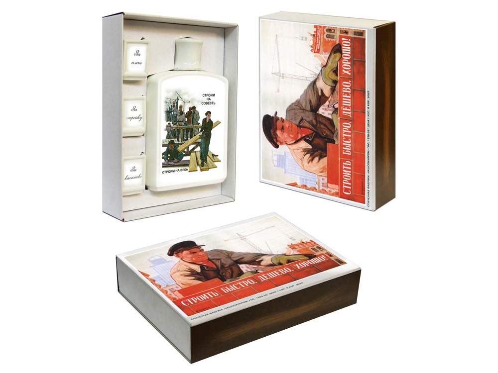 Оригинальный набор спички можно отнести к разряду необычных подарков. В коробке стилизованной под большой коробок спичек вы найдете оригинальный графин из фарфора с тематическим изображением и три небольшие стопки. Вместе с коробкой набор весит 2 кг. Набор Спички — сравнительно недорогой бизнес подарок, который можно персонализировать. Приобретая данный набор вы можете быть уверены в том, что это уникальный и оригинальный подарок.