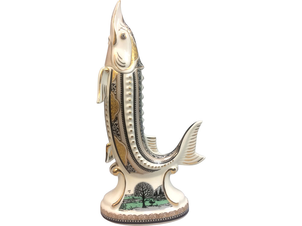 Фарфоровый Штоф Стерлядь объемом 0,5 литра станет прекрасным подарком для руководителя или партнера по бизнесу. Подходит для холодных напитков. Это уникальный сувенир, расписанный вручную.