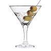 Классический конусовидный бокал для мартини из минерального стекла для вашего бара или ресторана. Форма этого бокала специально сконструирована таким образом, чтобы пальцы не согревали содержимое, ведь мартини и другие охлажденные коктейли, подаваемые в нем, сервируются безо льда.