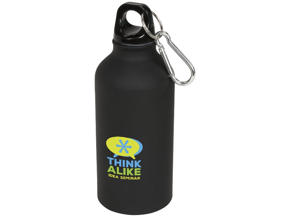 Матовая спортивная бутылка Oregon с карабином и объемом 400 мл. Бутылка с одинарными стенками со съемной крышкой. Модное матовое покрытие. Карабин не предназначен для лазанья. Объем – 400 мл. Алюминий без БФА.