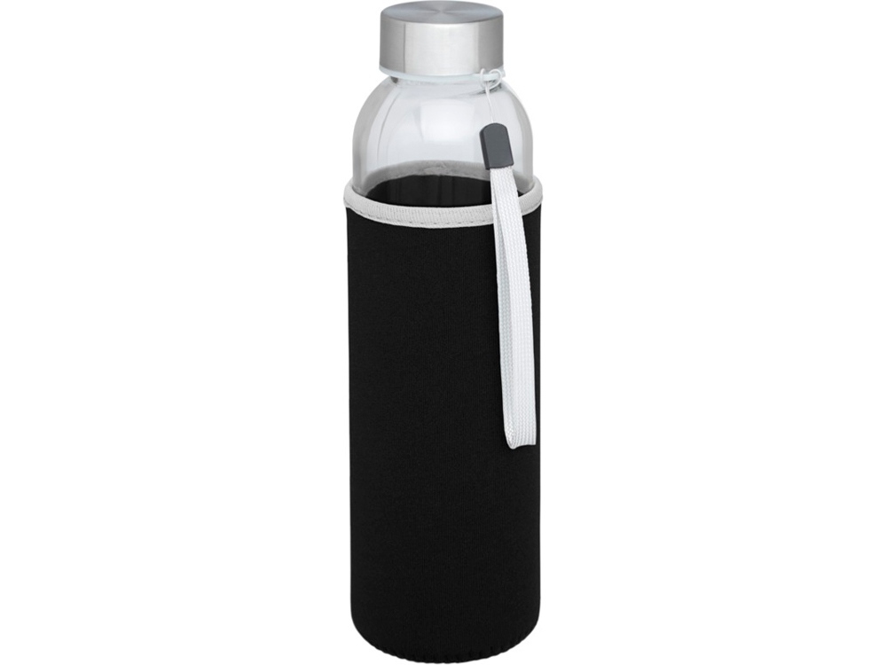 Стеклянная бутылка с одинарными стенками и съемной крышкой. На крышке есть ремешок для легкой переноски, кроме того имеется чехол из неопрена. Рекомендуется использовать для холодных напитков. Не замораживать, не разогревать в микроволновой печи. Объем 500 мл. Уложена в подарочную коробку.