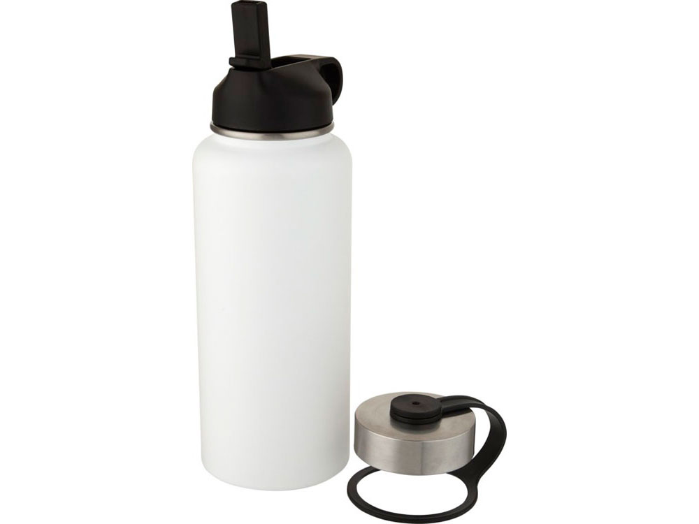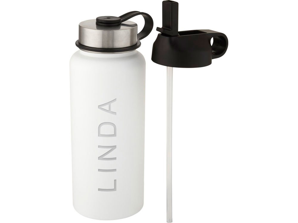 Спортивная бутылка два в одном из нержавеющей стали с двойными стенками, вакуумной медной изоляцией и двумя крышками: одна крышка с трубочкой для удобного питья и одна герметичная навинчивающаяся крышка с петлей для переноски. Изолированная конструкция из нержавеющей стали 18/8 предотвращает образование конденсата на наружной стороне бутылки, а современное порошковое покрытие обеспечивает чрезвычайную прочность. Широко открывающаяся горловина для удобного наполнения, разливания и мытья. Не содержит БФА, испытана и одобрена в соответствии с немецким законодательством о безопасности пищевых продуктов (LFGB). Проверена на содержание фталатов и одобрена для использования в соответствии с правилами REACH. Идеально подходит для кубиков льда. Объем: 1 литра. Рекомендуется мыть вручную. В подарочной коробке из переработанного картона.