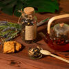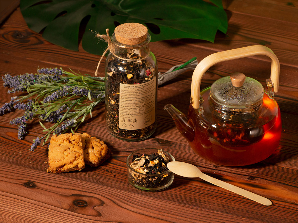 Чай с соком — натуральный, вкусный и полезный для здоровья напиток. Это не просто чай с фруктовыми кусочками и добавками, а чайные листья, наполненные соком свежайших плодов. Для изготовления 2 тонн такого чая используется 20 тонн свежих фруктов. По технологии чайные листья смешиваются с нарезанными кусочками фруктов и пропитываются выделяющимся соком. После этого вобравшие сок листья чая высушиваются и смешиваются с сублимированными ягодами или фруктами, образуя уникальный напиток.