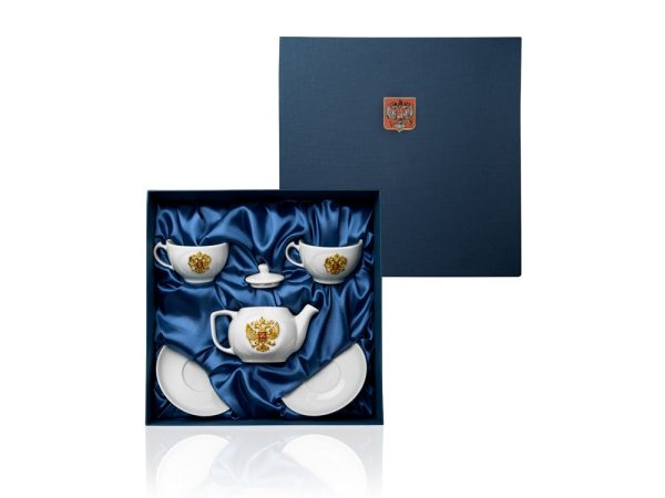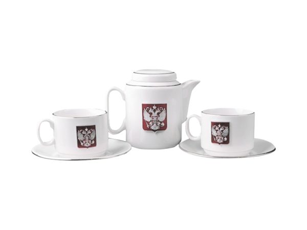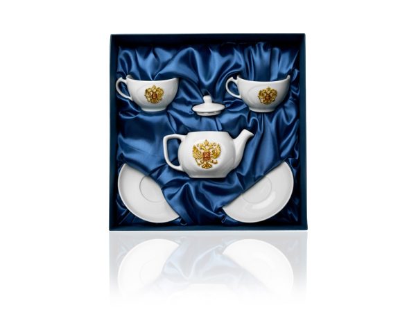 Подарочный набор чайных пар с фарфоровый чайником Виват, Россия! (5 предметов).
