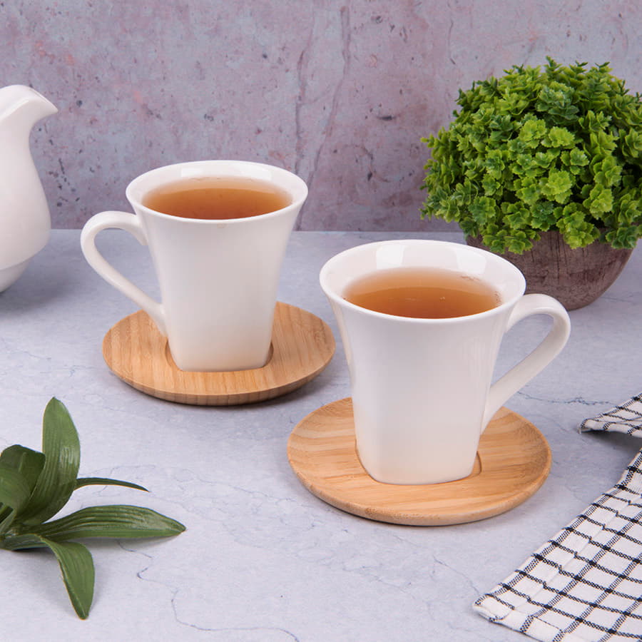 Набор "Натали": две чайные пары в подарочной упаковке, 19,5х19х9см, 200мл, фарфор, бамбук