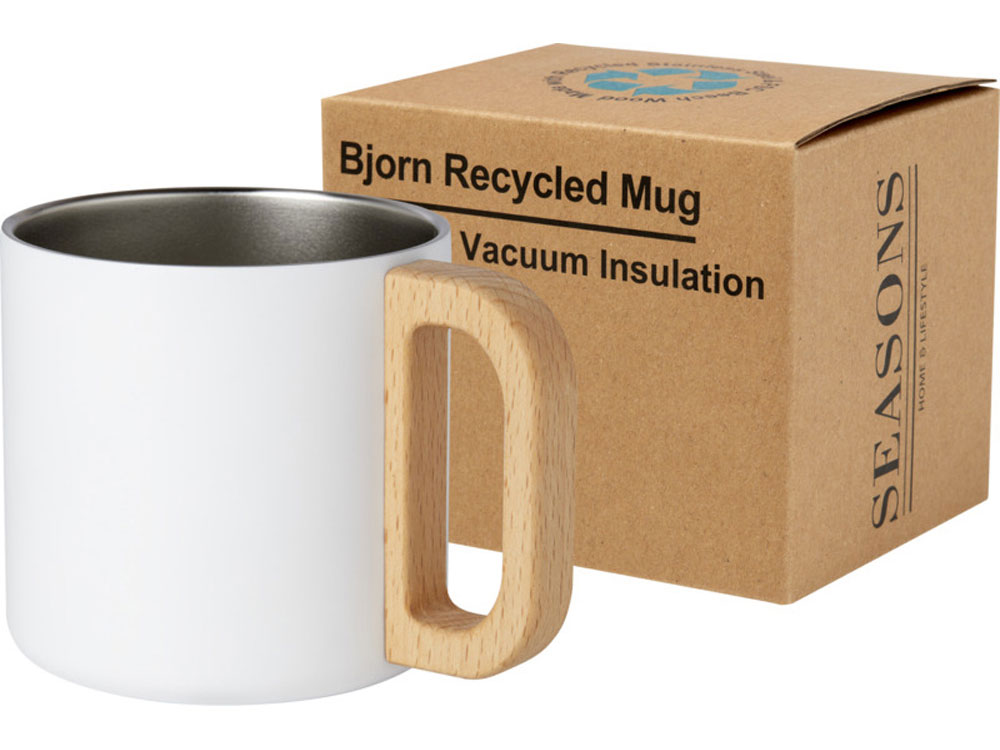 Кружка Bjorn изготовлена из переработанной нержавеющей стали, сертифицированной по стандарту RCS, а ручка изготовлена из древесины бука, полученной из ответственных источников. Медная вакуумная изоляция в кружке помогает поддерживать идеальную температуру напитков в течение длительного периода времени. Эта кружка является отличной альтернативой обычным кружкам и предназначена для предотвращения передачи тепла наружу. Протестировано и одобрено согласно немецкому законодательству о безопасности пищевых продуктов (LFGB) и проверено на содержание фталатов согласно нормам REACH. Емкость: 360 мл. Не содержит БФА.