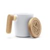 Матовая керамическая кружка с бамбуковой крышкой и ручкой – стильный и функциональный выбор для наслаждения любимыми напитками. 350 мл