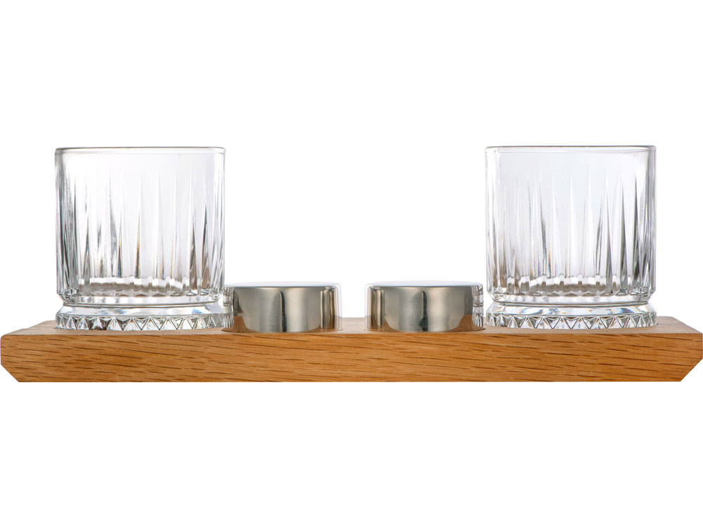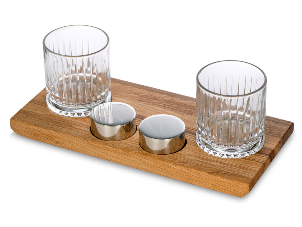 Для сервировки в набор входит дубовый поднос с выемками под бокалы и шайбы.