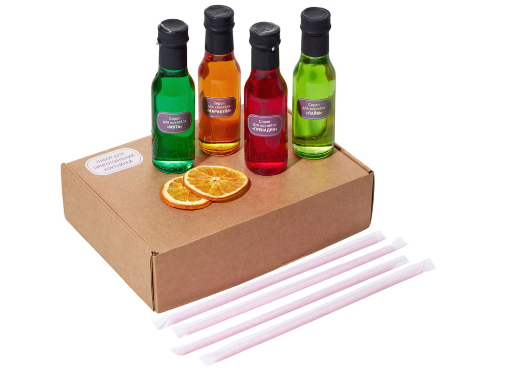 — 4 бутылочки сиропов по 100 мл с яркими вкусами: Лайм, Маракуйя, Мята, Гренадин – классика коктейльного бармена.