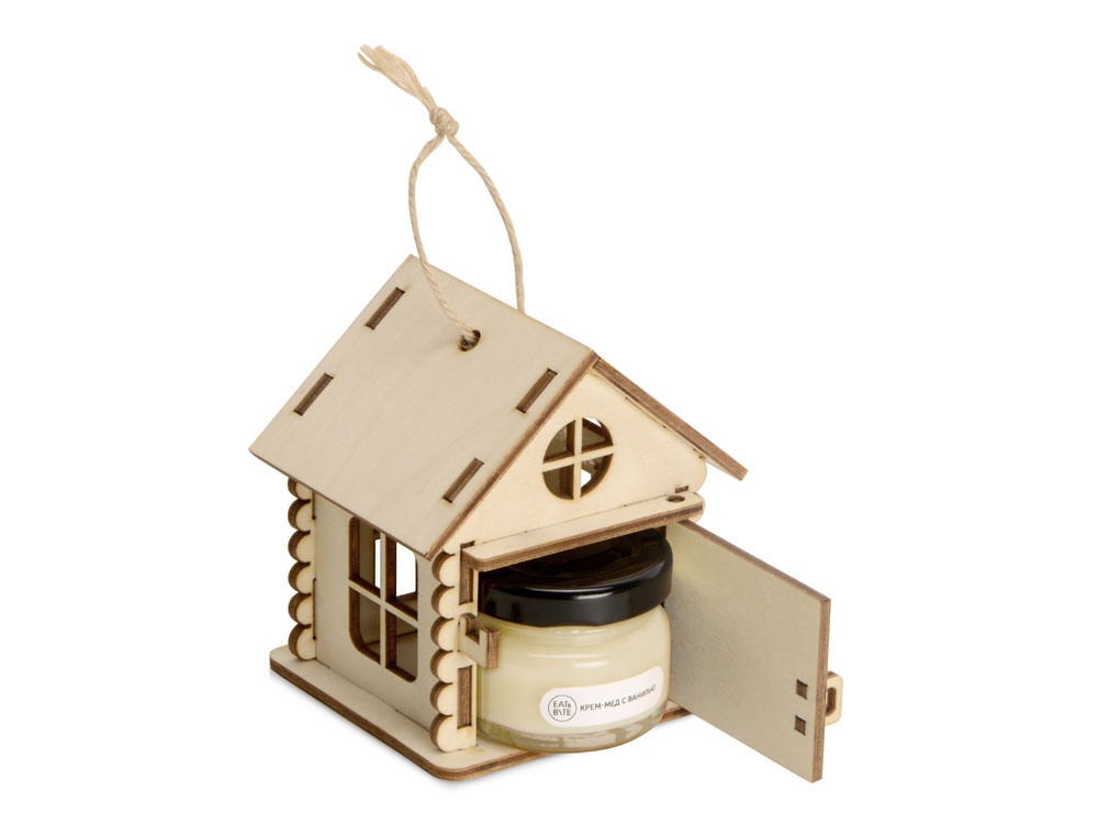 В домике открывается дверца, и в него можно поместить небольшую баночку с медом или вареньем. Оригинальная конструкция сувенира украсит любой интерьер, как в офисе, так и в квартире. Подарочная упаковка Домик позволит вам сделать оригинальный и запоминающийся подарок для руководителя или коллеги.