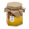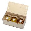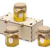 Набор состоит из трёх баночек мёда с орехами: с кешью, миндалём и грецким орехом. Набор упакован в подарочную деревянную коробку.