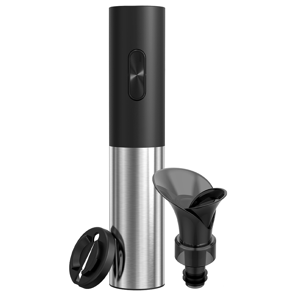 Подарочный винный набор Circle Joy Black 3 в 1 привлекает своей функциональностью и внешним видом. Электрический штопор на батарейках (идут в комплекте), выполнен из нержавеющей стали с мощным мотором. Вы без лишних усилий, используя винный штопор Circle Joy , откроете за 6 секунд бутылку с разными видами пробки: синтетической или деревянной. Многофункциональный нож для удобного снятия фольги на бутылке удобно фиксируется в основании штопора. Благодаря вакуумной пробке для вина из прочного акрила и качественного силикона, спустя 7 дней аромат и вкус вина в открытой бутылке останется таким же свежим и насыщенным! Универсальный размер аэратора поможет аккуратно разлить вино. С винным набором 3в1 вы никогда больше не захотите пользоваться традиционным штопором. Используя штопор электрический, открывайте любую бутылку быстро и легко! Набор для вина Circle Joy — отличный подарок себе и близким на Новый Год, день рождения и просто так!