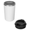 Термокружка Kick отлично подойдет для повседневного использования как на работе, так и дома. Термокружка надежно крепится к столу за счет присоски на дне, что исключает падения при случайном задевании. Чтобы воспользоваться кружкой, ее нужно поднять вертикально. Дополняет конструкцию герметичная крышка с клапаном. Внутренняя колба выполнена из пищевой нержавеющей стали 304 марки, снаружи — пластик с покрытием софт тач. Удерживает тепло около 3.5 часов.