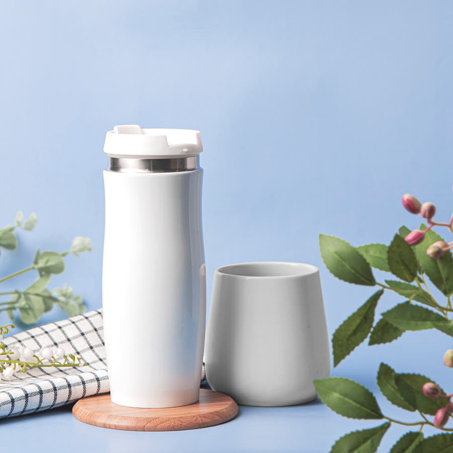 Термокружка вакуумная дорожная"Фантазия-2"; 400 мл; белый металл