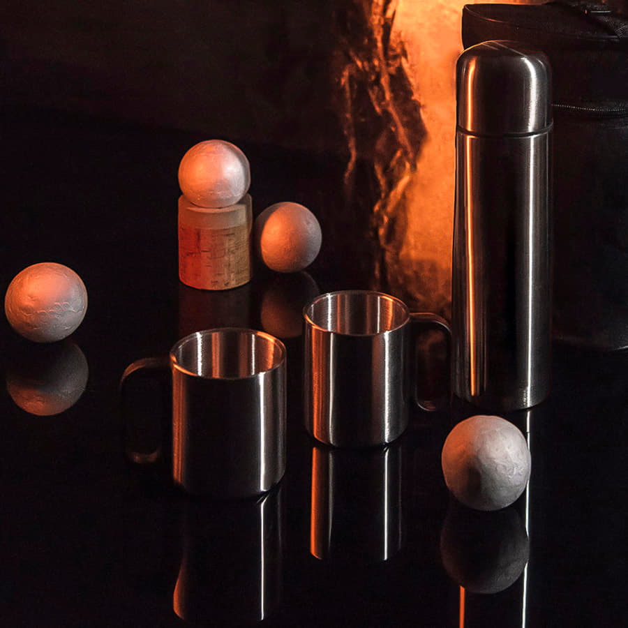 Универсальный набор с термосом на 0,5 литра и двумя металлическими кружками в удобном нейлоновом чехле с ручкой. Кружки, корпус термоса и колба выполнены из нержавеющей стали. Сохраняет тепло до 12 часов в зависимости от температуры окружающей среды. Набор удобно взять с собой в дорогу или на пикник.