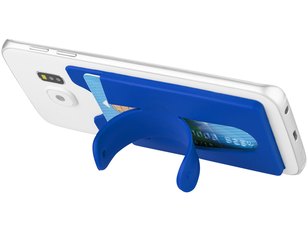 Чехол для карт с держателем мобильного. Этот мягкий защитный силиконовый чехол с помощью клейкой ленты можно легко прикрепить на задней стороне телефона. В нем можно разместить от 2 до 3 кредитных карт и/или удостоверения личности. Он также может быть использован в качестве подставки для телефона. Чехол достаточно тонкий и легко помещается в кармане. Силикон.