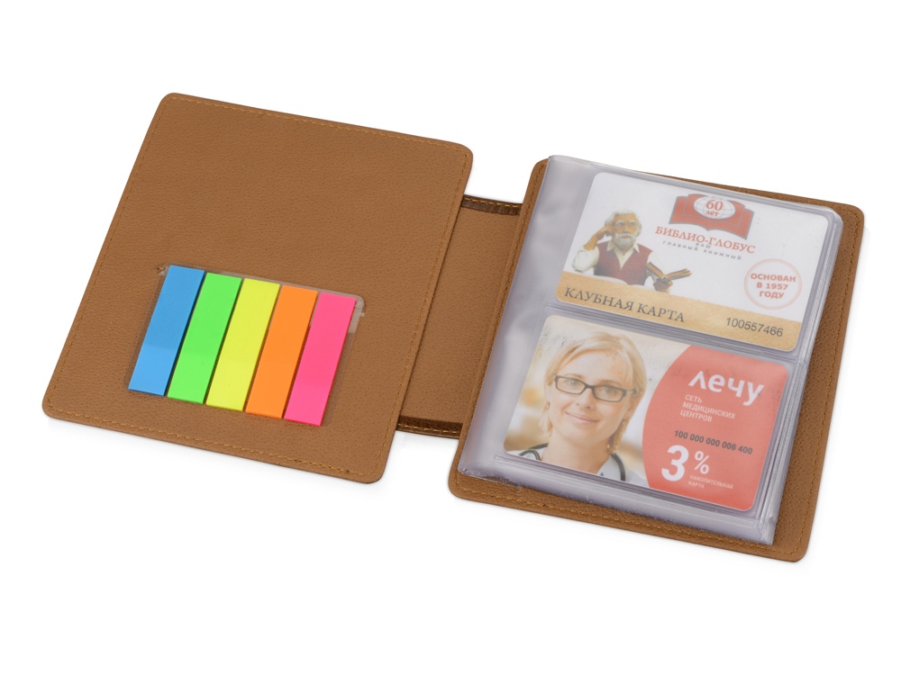 Компактная, удобная визитница из натуральной кожи рассчитана на одновременное хранение не более 36 карточек. В комплекте к визитнице прилагается набор разноцветных стикеров. Превосходный подарок для активных деловых людей.