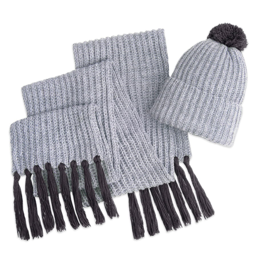 Мягкий, пушистый и уютный комплект из шарфа и шапки поможет согреться вам в холодное время года. Светло-серый цвет нейтрален и очень комфортен в носке. Благородый серый ассоциируется с компромиссом, спокойствием и стабильностью. Почувствуйте магическое влияние серого цвета в сочетании с яркой отделкой!Цвет помпона и кисточек близкий к Pantone 166C