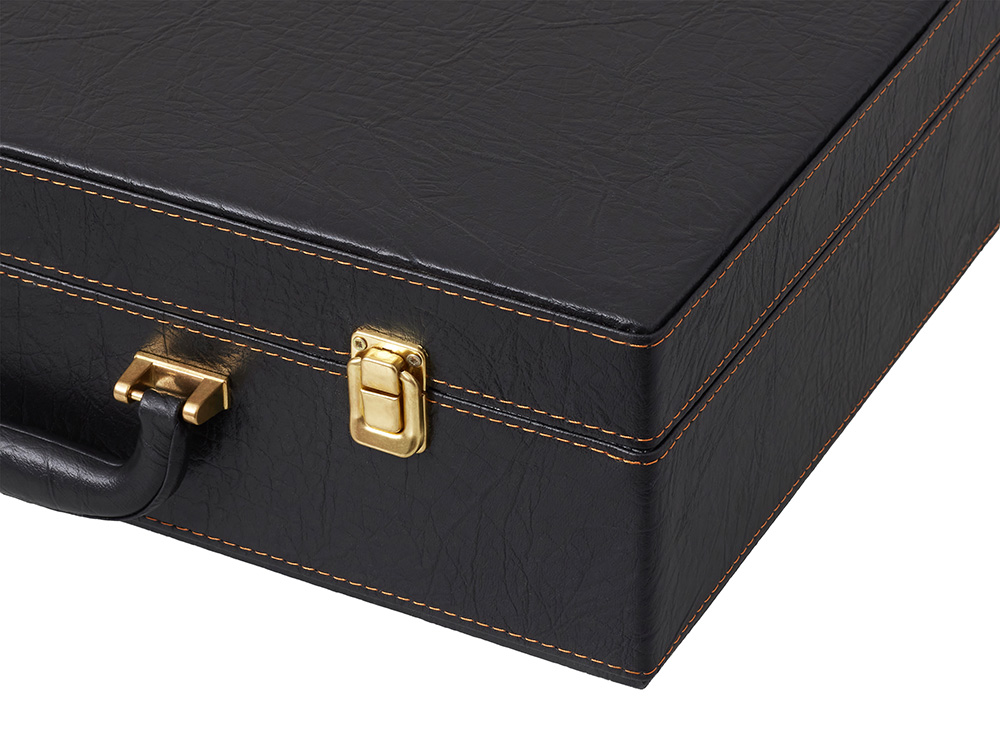 Элегантный дипломат из сплит-кожи с аккуратной строчкой по краям – идеальная упаковка для особенного подарка. Удобная ручка и надежный замочек делают его не только красивым, но и практичным. Внутри достаточно места для презента, который запомнится надолго!