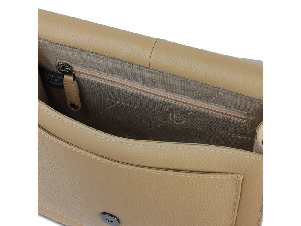 Функциональная организация: основное отделение на магнитной кнопке с карманом на молнии и открытым карманом, передний открытый карман, задний карман на молнии, съемный регулируемый плечевой ремень (до 130 см).
