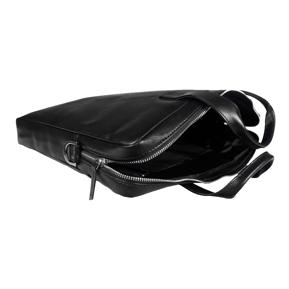 Эта стильная и вместительная деловая сумка станет незаменимым помощником в повседневных офисных буднях и рабочих командировках. Основное отделение сумки закрывается на молнию, предназначено для документов формата А4, в нем также можно разместить планшет или ноутбук и другие необходимые личные вещи. Дополнительную функциональность добавляет вместительный наружный карман на задней стенке модели. Изделие можно носить на 2-х коротких ручках, также в комплекте предусмотрен съемный регулируемый по длине плечевой ремень.