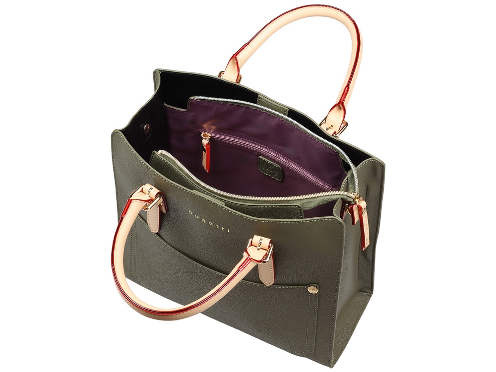 Внутренняя организация: основное отделение на молнии с карманом на молнии и 2 открытыми карманами, 2 боковых отделения с магнитными застёжками