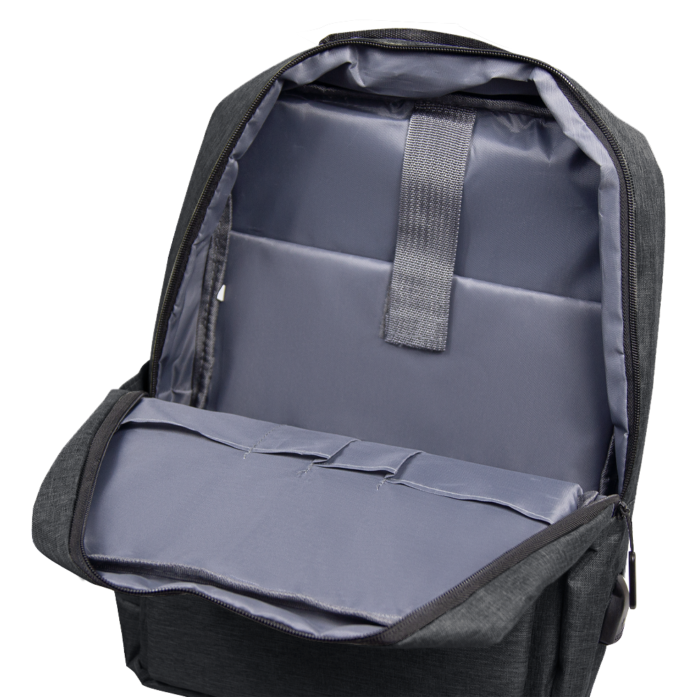 Практичная модель, удобная для использования в повседневной жизни. Имеет два вместительных передних кармана, один из которых скрытый и один боковой карман. Основное отделение содержит внутренний карман на липучке для ноутбука, 2 кармана для мелочей и 2 кармана для письменных принадлежностей. Снаружи расположен USB-разъем с проводом внутри для подключения внешнего аккумулятора, широкие вентилируемые лямки.