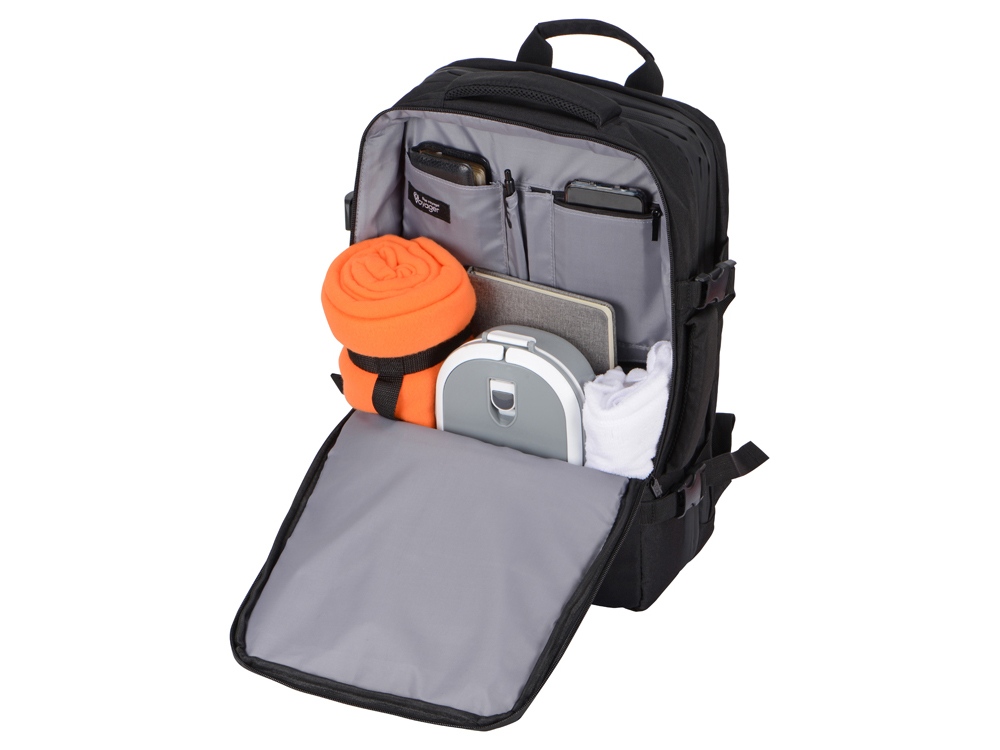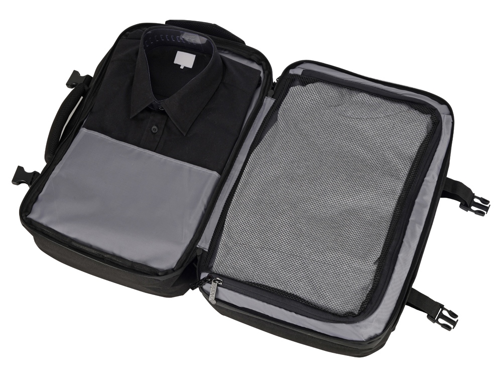 Идеальное решение для деловых поездок и путешествий в любую погоду — поместится все необходимое — от планшета и ноутбука до личных вещей и одежды. С рюкзаком можно ездить в любую погоду, потому что он изготовлен из водостойкого материала и снабжен водонепроницаемыми молниями. С помощью 4-х боковых фиксаторов вместительный рюкзак трансформируется в компактную сумку.