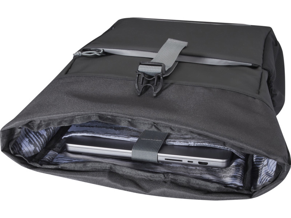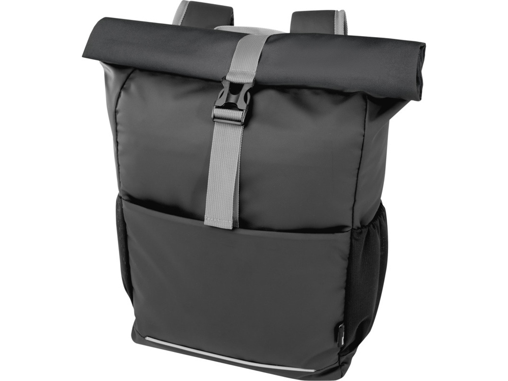 Водонепроницаемая велосумка со скручиваемым верхом, изготовленная из переработанных материалов, сертифицированных по стандарту GRS. Она имеет мягкое отделение для ноутбука с диагональю 15 дюймов, несколько карманов-органайзеров, регулируемую застежку липучку для удобной установки на различные велосипеды и светоотражающую окантовку для обеспечения видимости. Из переработанных материалов, сертифицированных по стандарту GRS, изготовлены основная ткань, подкладка, лямки и застежки-молнии. Емкость: 20 литр. Не содержит ПВХ. GRS certified recycled polyester.