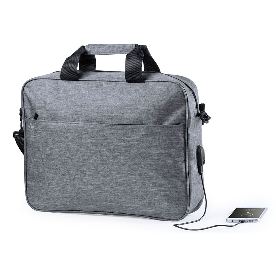 Сумка для документов с фактором их защиты. Внутренний карман с RFID защитой, которая оберегает данные кредитных карт и прочих девайсов от несанкционированного доступа. Прочный полиэстер 300D. Усиленные ручки. Основное отделение с USB-коннектором, на молнии (пауэрбанк не входит в комплектацию). Отделение для ноутбука с диагональю 15 дюймов. Отделение для планшета с диагональю 10 дюймов. Урбанистичный дизайн.
