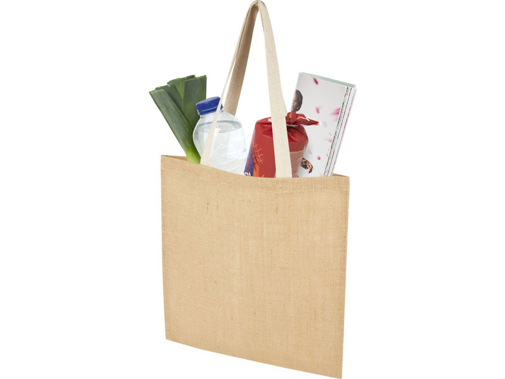 Компактная, но вместительная эко-сумка Juta объемом 7 л позволяет переносить предметы первой необходимости, что делает ее идеальным выбором для покупок, работы или путешествий. Изготовлена из прочного и износостойкого ламинированного джута плотностью 300 г/м². Длинные тканые ручки из хлопка (30 x 2,5 см) обеспечивают удобное удерживание при длительном ношении эко-сумки. Сделано в Индии и сертифицировано OEKO-Tex.
